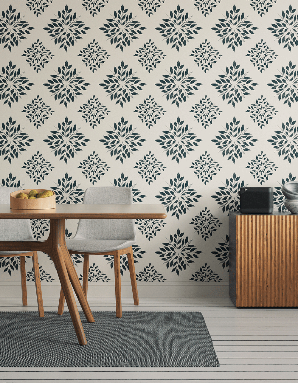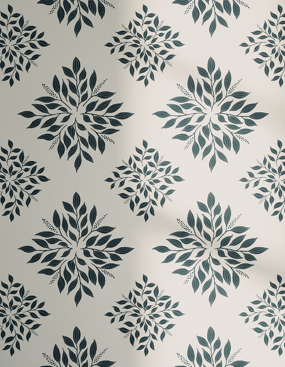 Gorgeous eucalyptus leaves meet geometrical wizardry in this thoroughly modern design, created with a blend of white and blue on fine grade toll-coated, non-woven paper. Ideal for contemporary spaces, with paste-the-wall application for no-mess hanging.