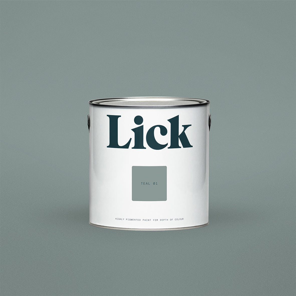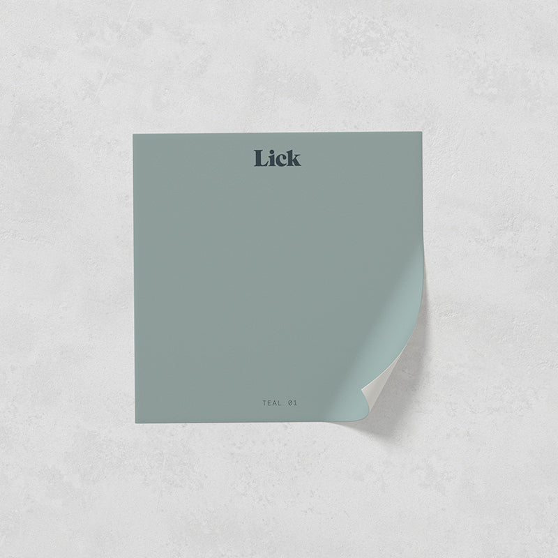 Lick Teal 01 paint is a subtle mid green shade possessing grey blue undertones. Ideal as a backdrop for statement pieces of furniture or decor.