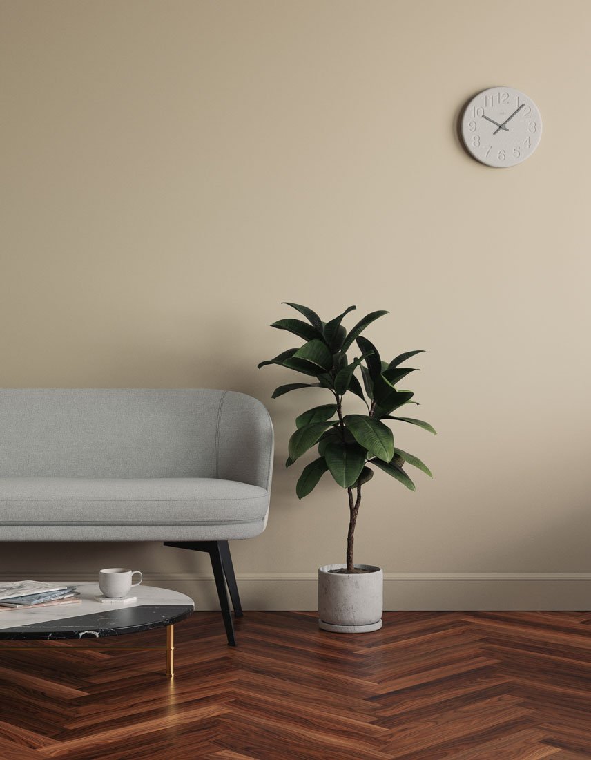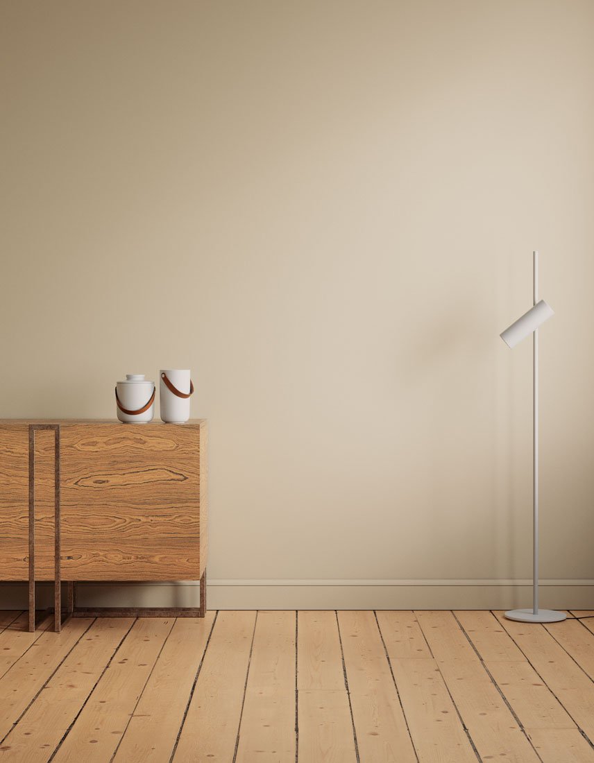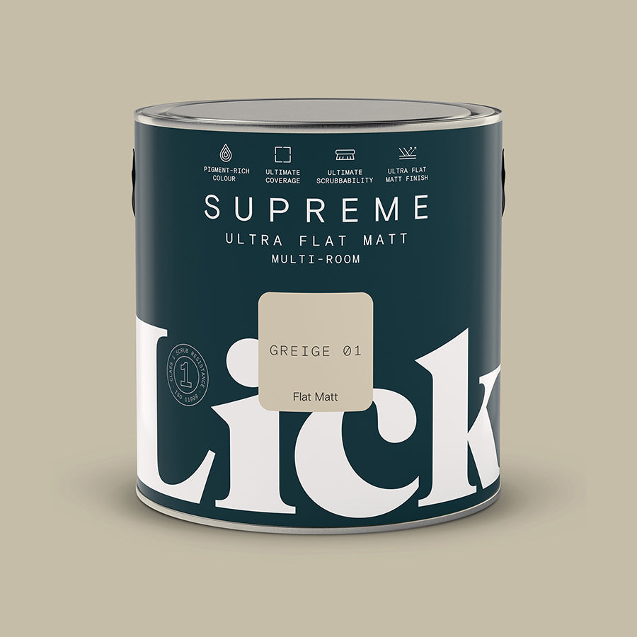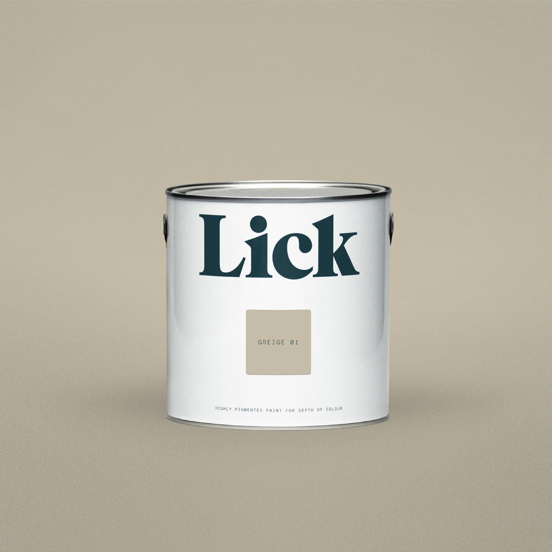 More warmth than grey but more depth than beige, that's greige. And as it's on the warmer end of the spectrum, 01 has a little bit of green going on. It reminds us of slowly-setting plaster, earthy and ambient, with an aptly crisp and matt finish.