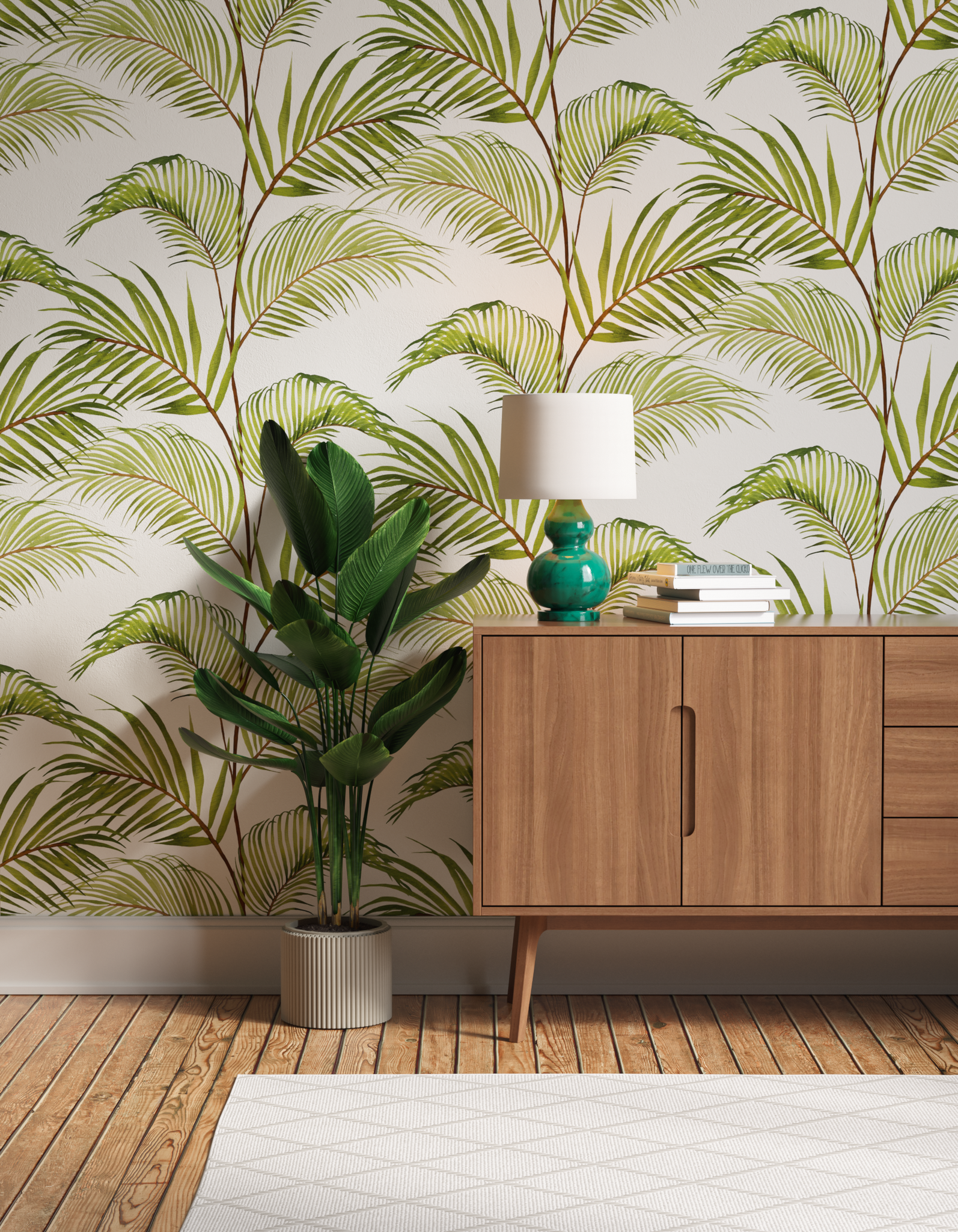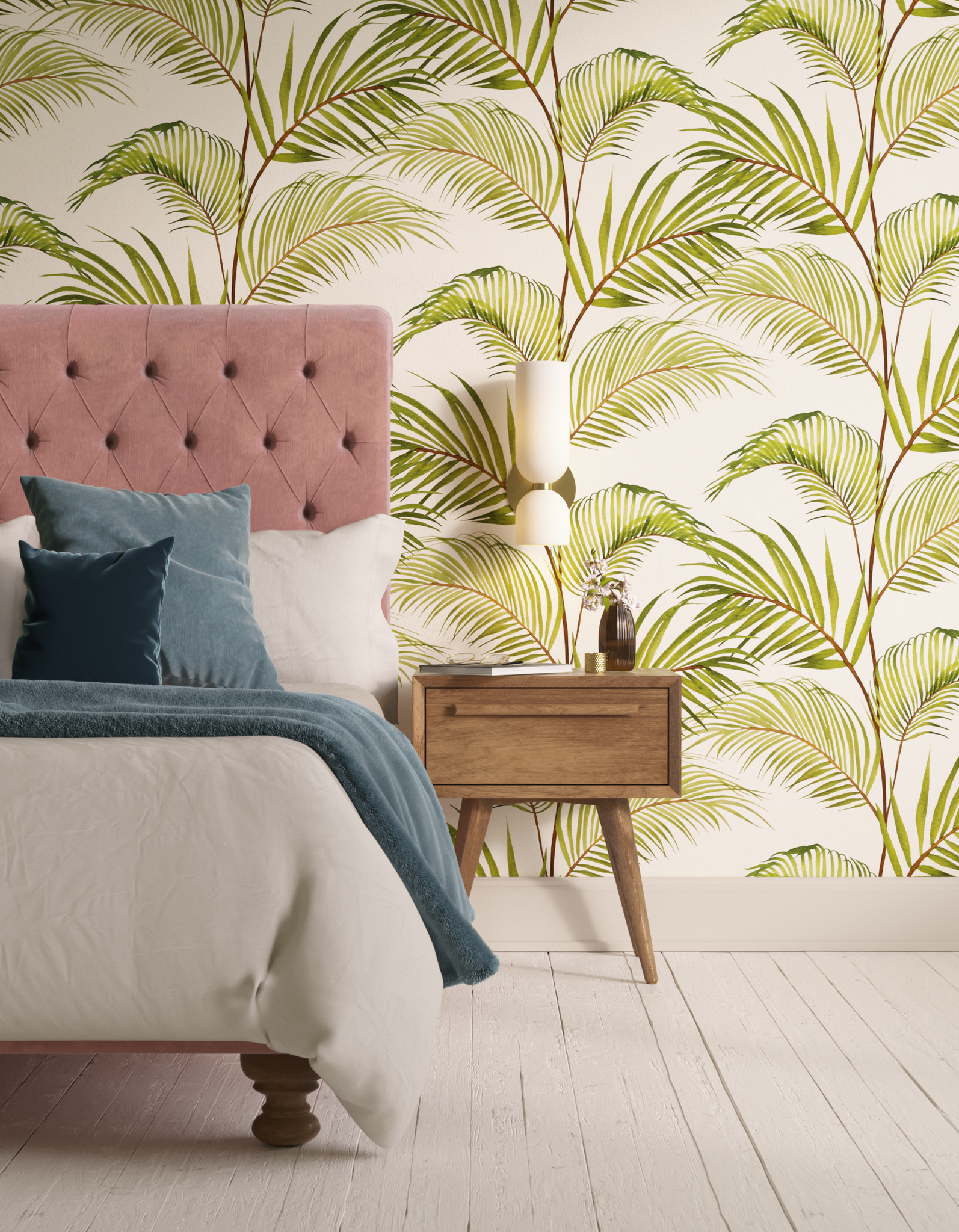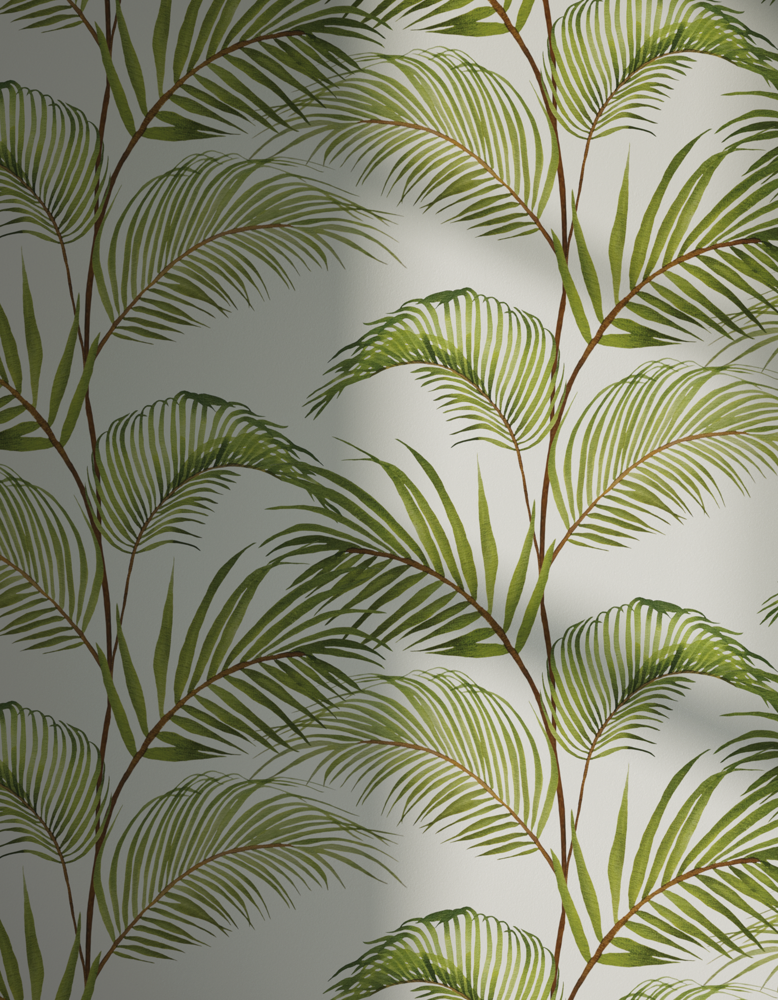 Lick Jungle 03 is a white and green palm leaf wallpaper, inspired by the tropical plants found in the jungle. Discover our botanical wallpaper collection.