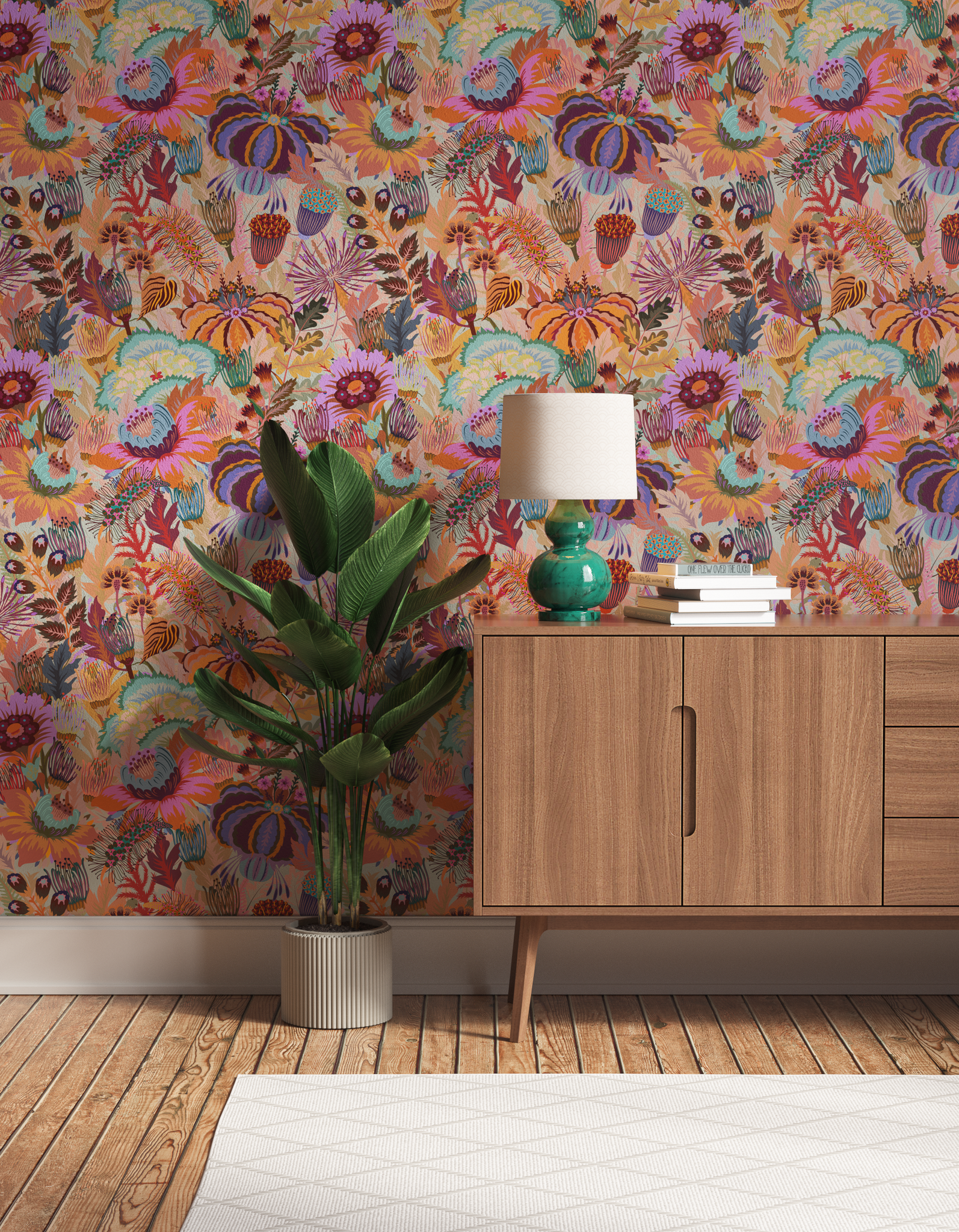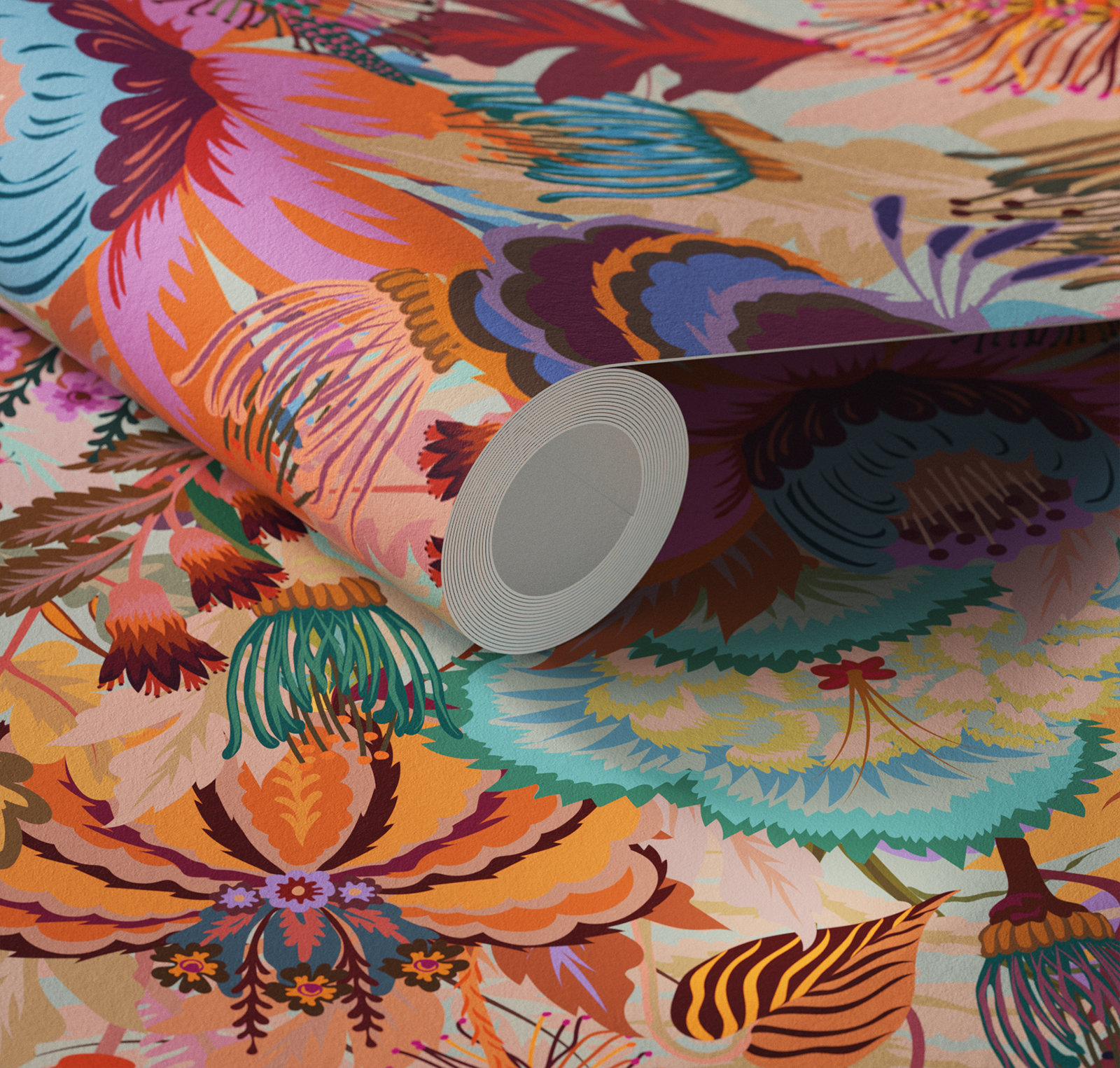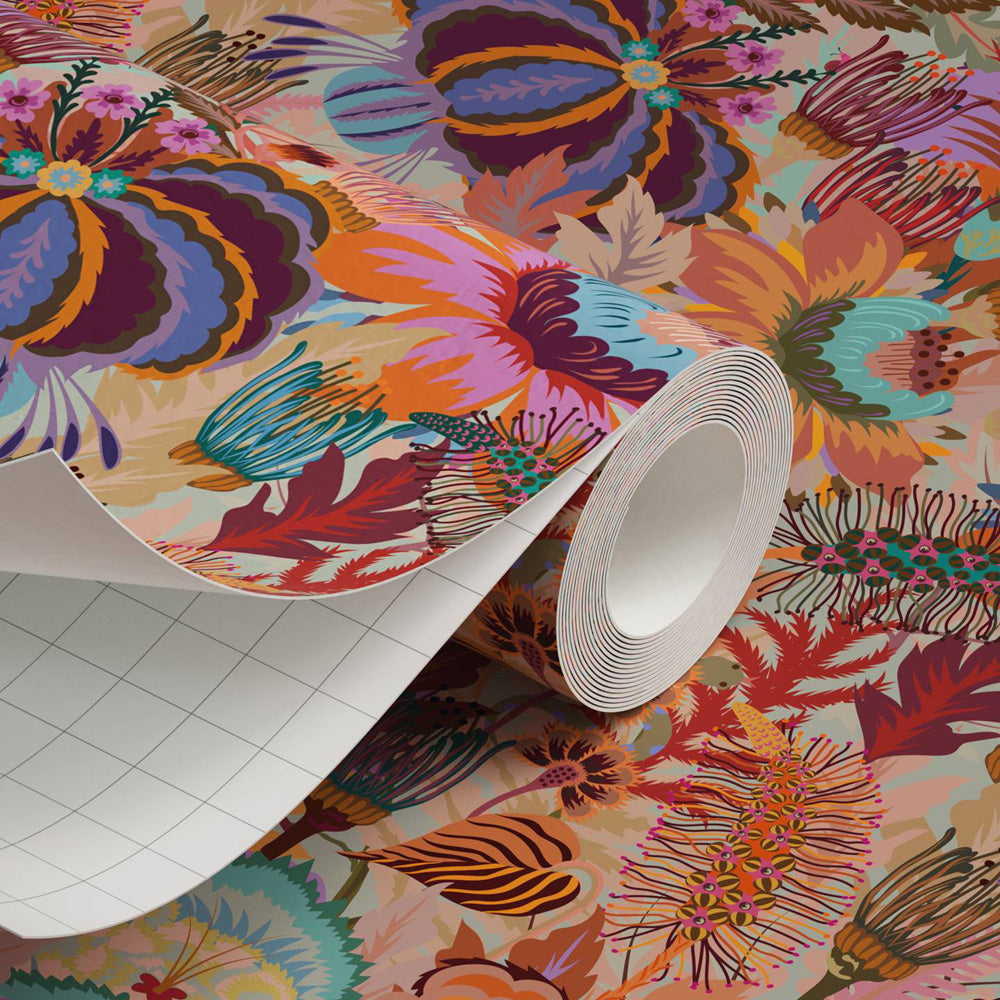 Lick Mars Meadow 02 by Natasha Coverdale is a floral wallpaper that features orange-based flowers. Discover our contemporary wallpaper collection.