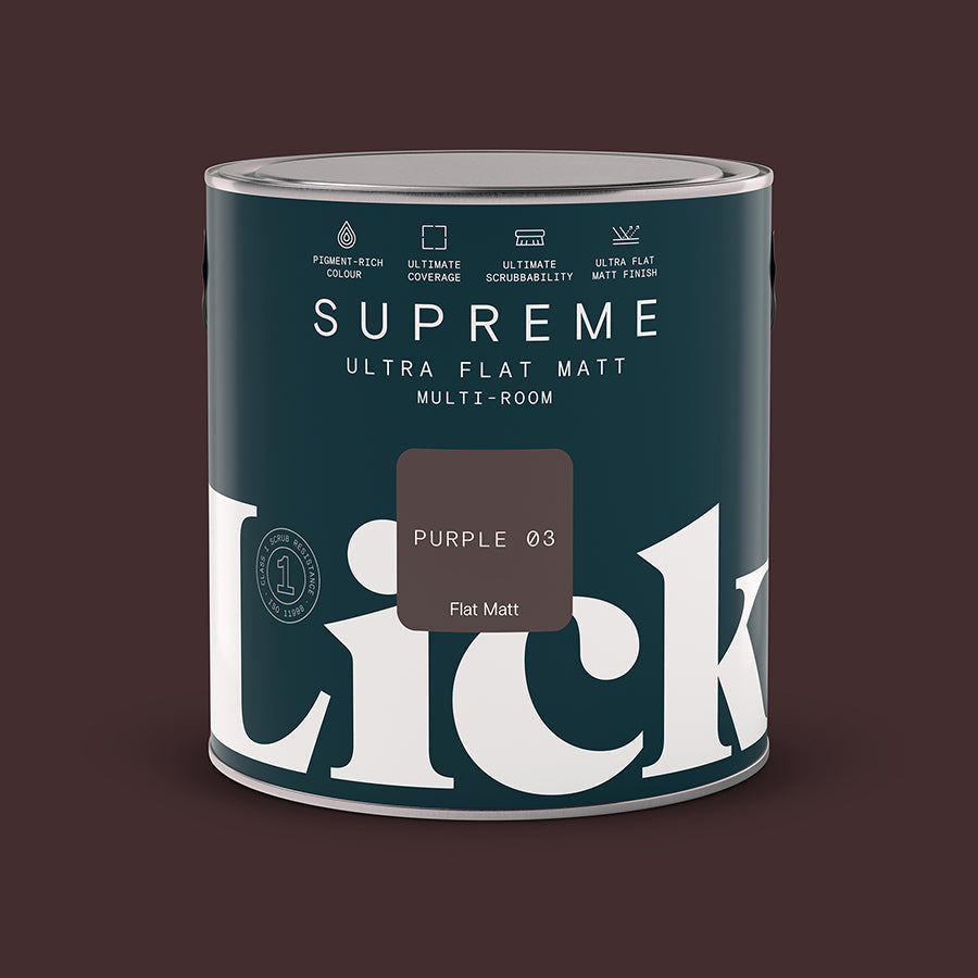 Lick Purple 03 is a dark velvety purple paint with deep blue undertones. Transform any room with this luxurious, elegant shade from our Neo Deco palette.