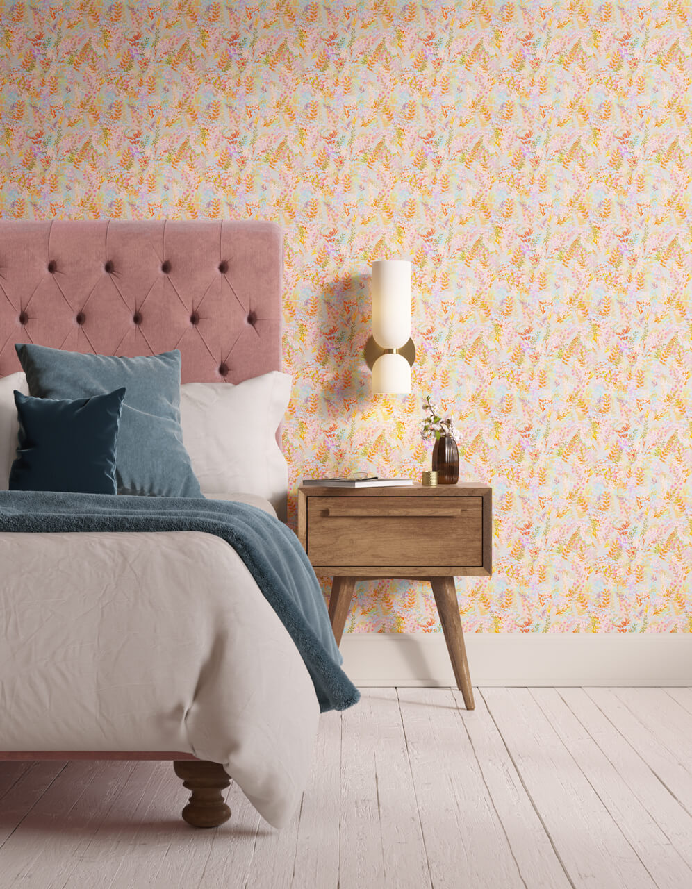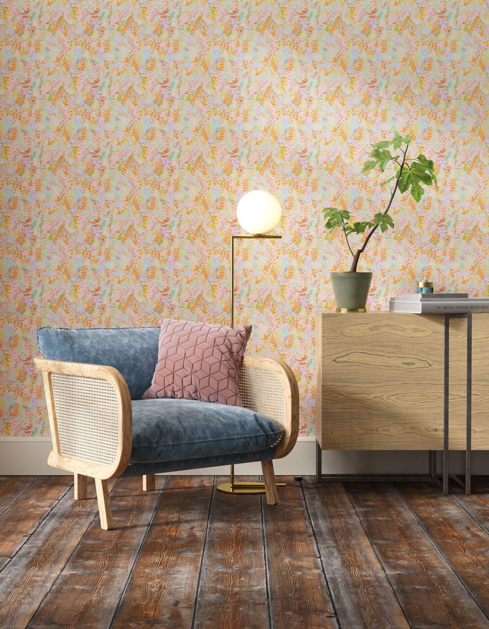 Lick Village Cricket 02 is a pink floral and botanical wallpaper designed by Studio Coverdale. This gentle and understated design will add softness to any room.