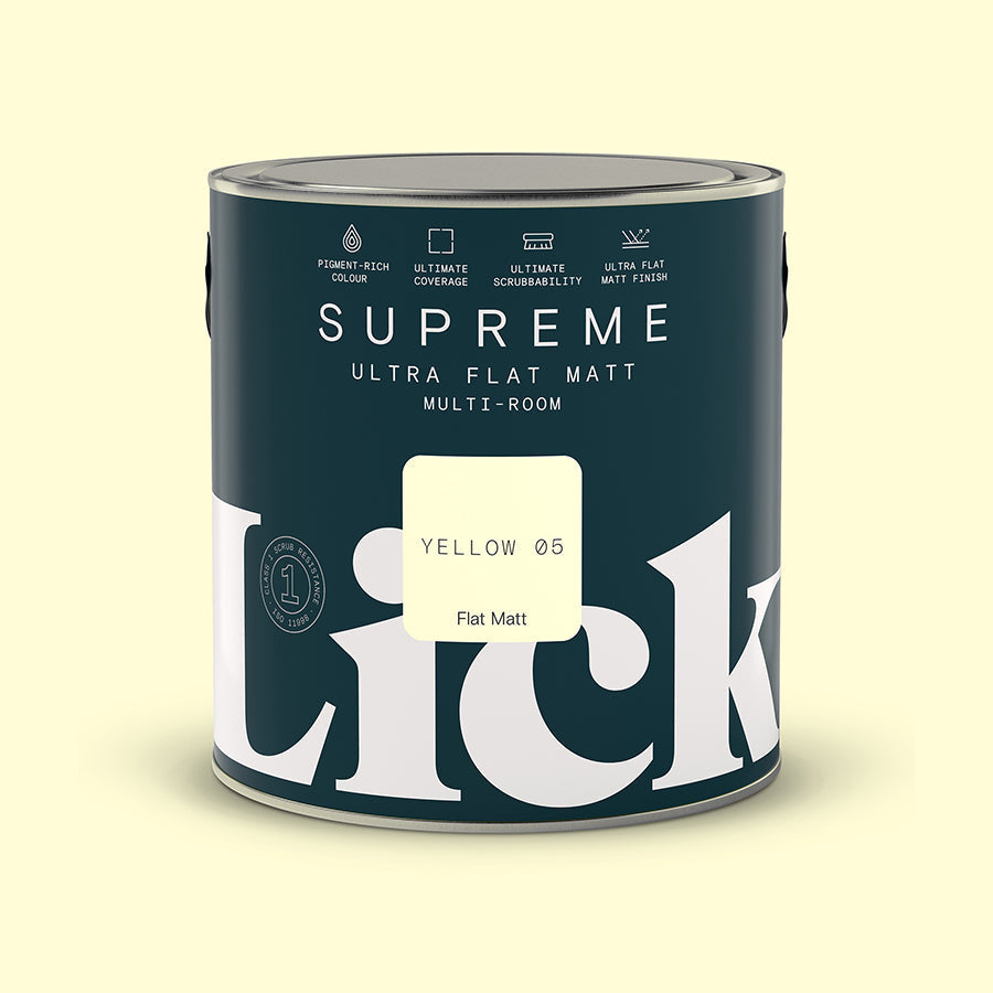 A pale yellow that's still full of warmth, Yellow 05 is a delicate, soft yellow paint that's brightened and lightened by plenty of white in its base. Available in a matt and eggshell finish.