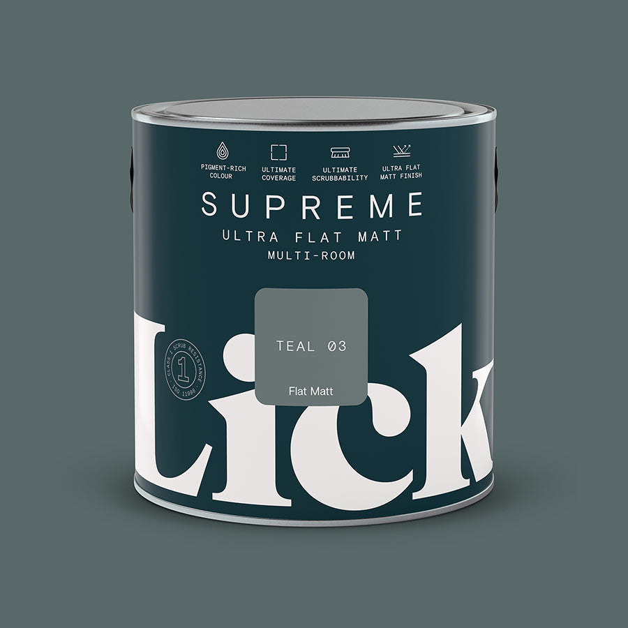 Lick Teal 03 paint is as cool as it comes. Tired of white? We've combined blue and grey with a charcoal base to create a neutral palette with added character.